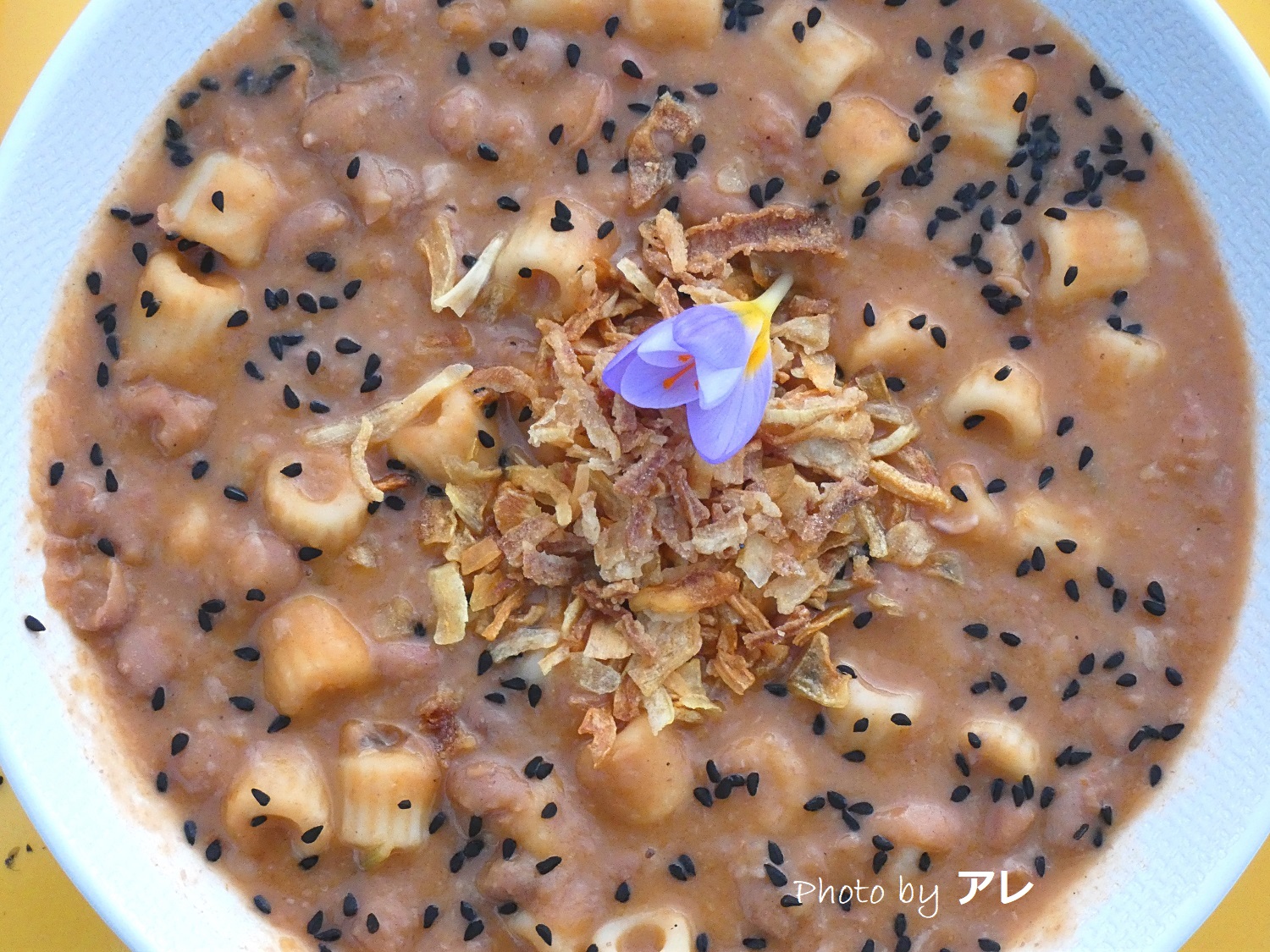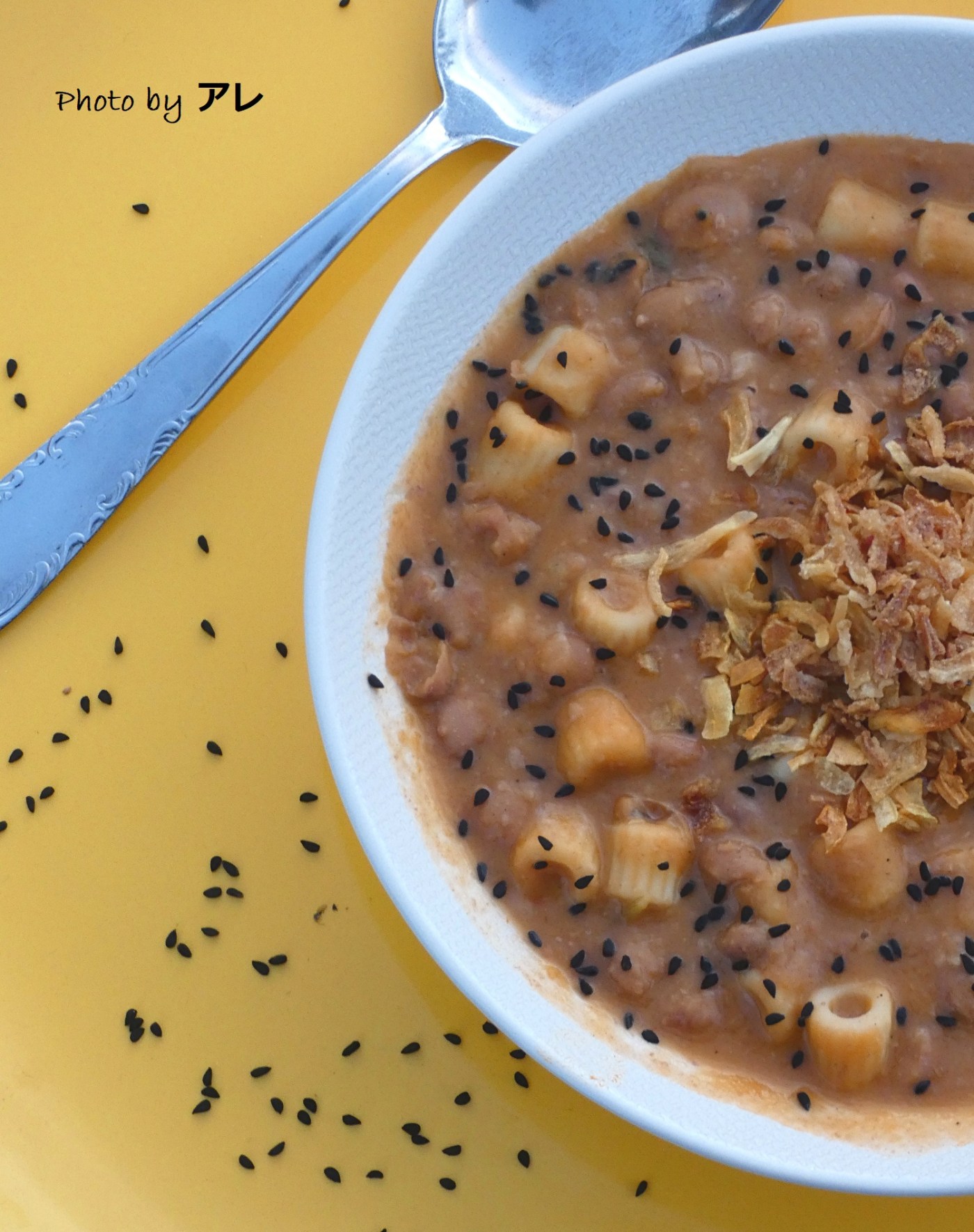 rendiamo un po croccante e briosa questa classica pasta e fagioli mettendo della cipolla fritta e i semi di nigella! Potete optare anche per un “croccante” diverso come i capperi fritti, che daranno un gusto speciale e particolare oppure cosa ne pensate di frutta secca tostata come noci, nocciole e pinoli?