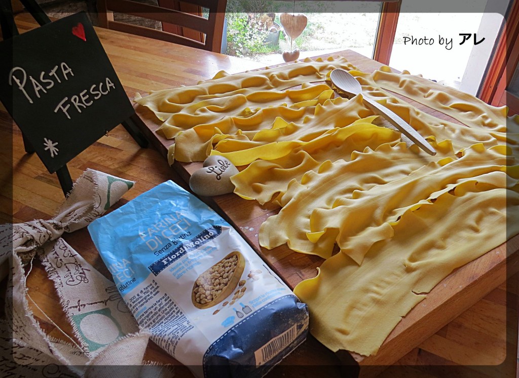 (per 6 – 8 persone dovreste usare: 400 gr di farina di ceci, 4 uova, 1 pizzico di sale e olio extravergine)