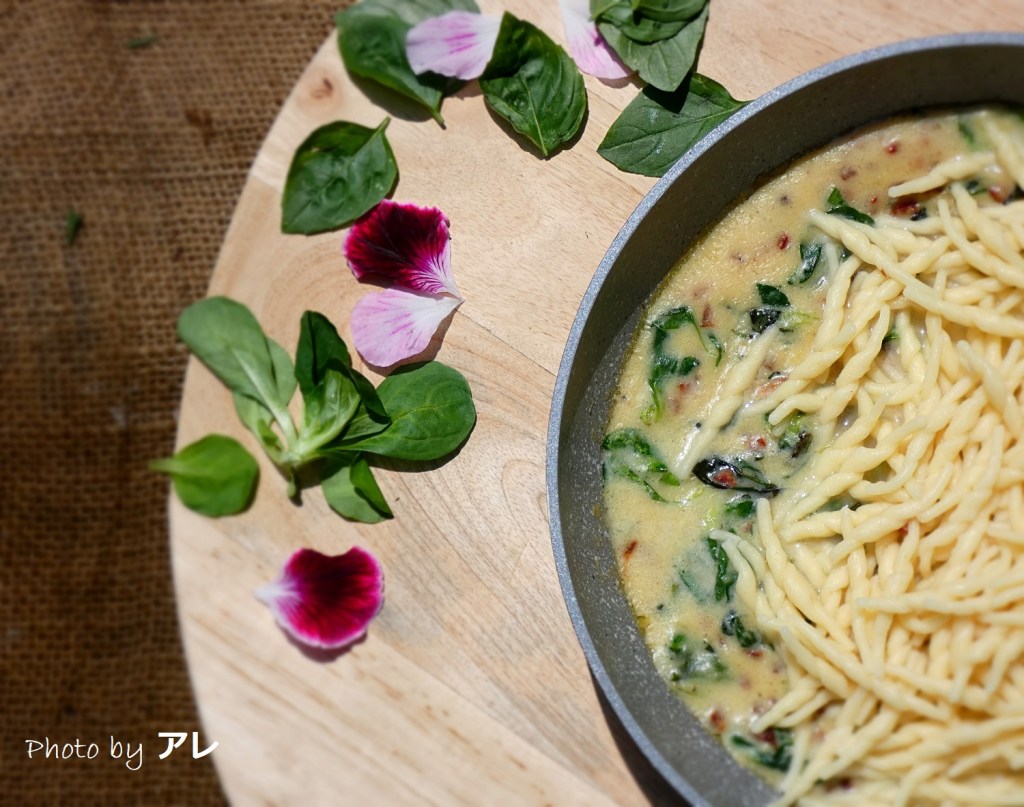 questo fantastico sugo l’ho visto tempo fa sul web, lo proponeva Sale & Pepe che io, tra l’altro, adoro come rivista, sempre con foto fantastiche e ricette mai scontate. Ho deciso di riproporlo sul mio blog con le variazioni a me congeniali, come il songino che si utilizza sempre e solo in insalata e il basilico.