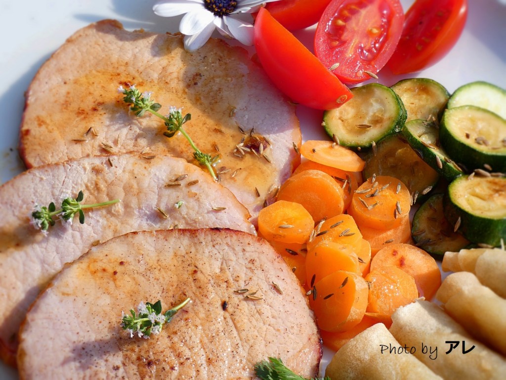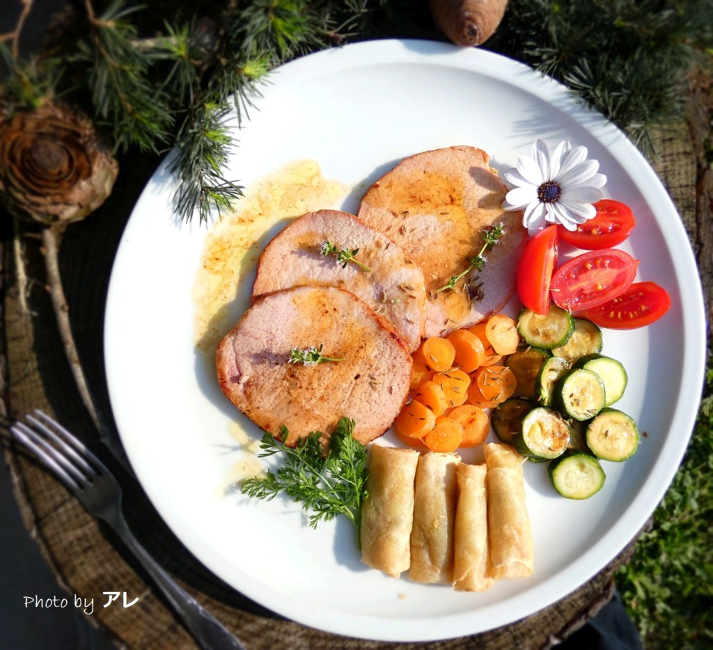 Io li ho serviti con carote e zucchine al burro, pomodori freschi conditi con un leggero filo d’olio extravergine e dei piccoli involtini di pasta fillo ripieni di carote e zucchine tagliate a julienne