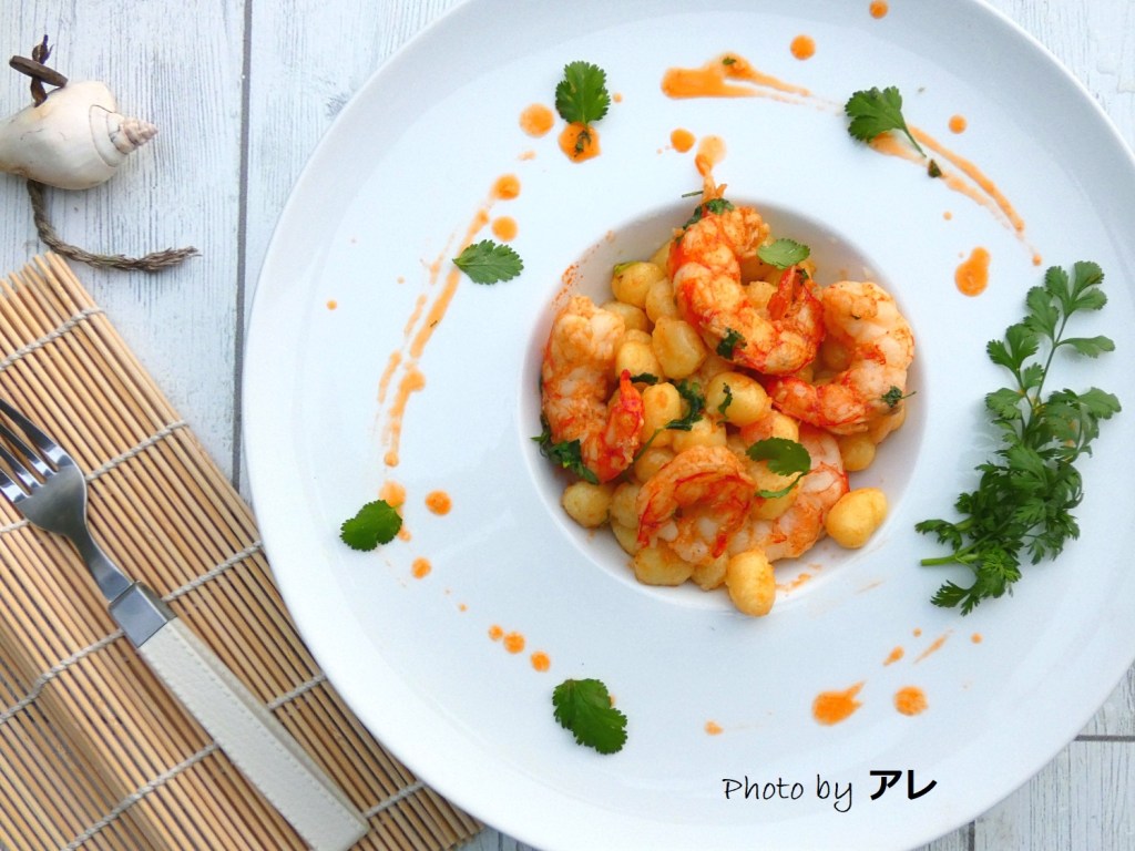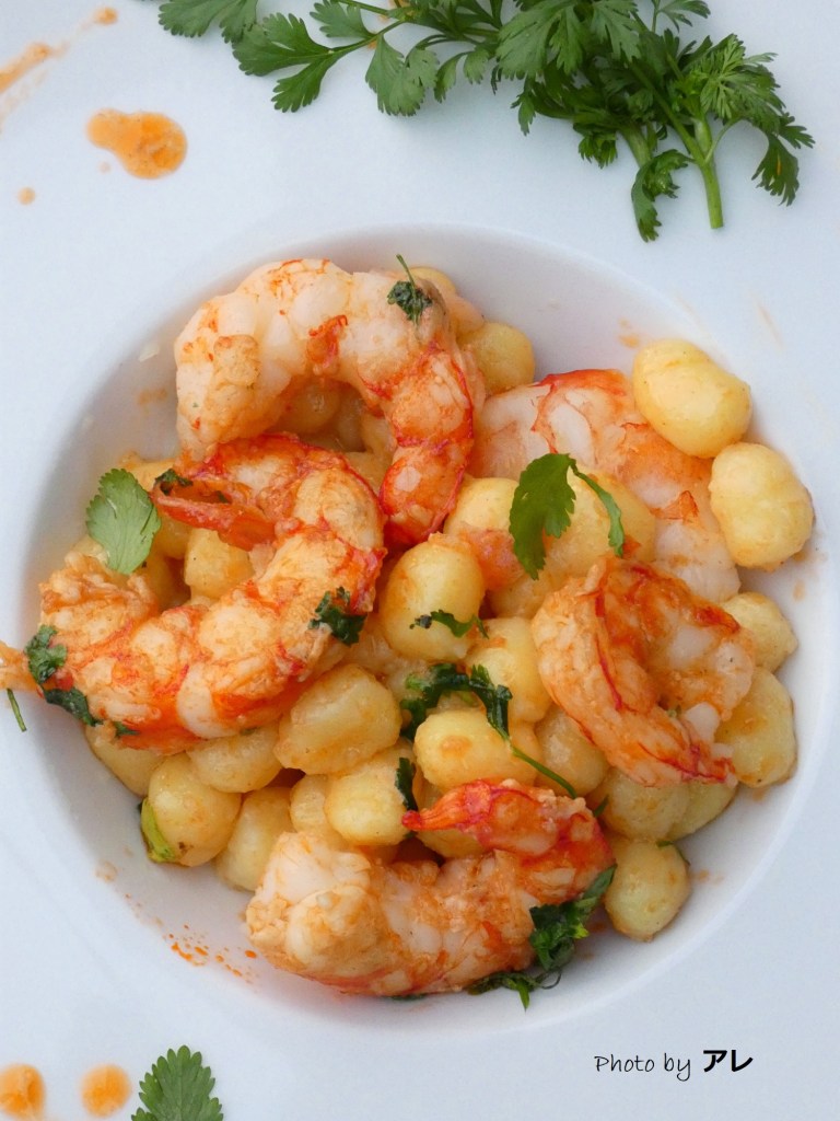questa ricetta è di velocissima realizzazione. I gamberi, o mazzancolle sono di sapore dolciastro e l’abbinamento con il brandy è spettacolare. Non serve altro tipo di intingolo o sugo perchè i gamberi, rosolando nel burro e nel brandy rilasceranno un sughetto delizioso che renderà le chicche di patate gustosissime.