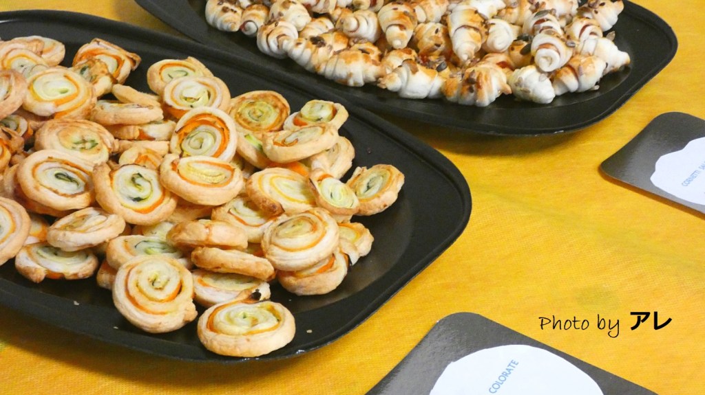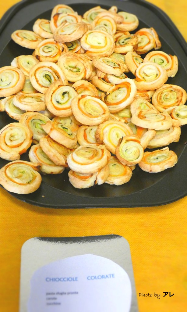 ricavare dalle carote e dalle zucchine delle fettine sottilissime. Prendere la pasta sfoglia rettangolare e ricoprire ordinatamente con le fettine di verdura, tutte le carote da un lato e tutte le zucchine dall’altro nel senso corto. arrotolare la pasta sfoglia dal lato lungo in modo da ottenere un lungo rotolone. Tagliare le rondelle di pasta sfoglia e appoggiarle su carta da forno. Spennellare con uovo sbattuto e infornare per 15 minuti circa