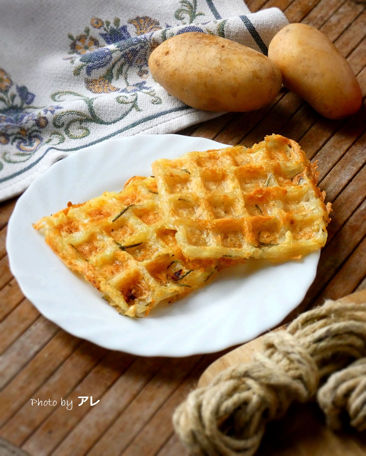Iniziate pulendo e lavando le patate. Sbucciarle se la pelle è troppo spessa e vecchia mentre potrete lasciarla se le patate sono novelle con la buccia tenera e sottilissima. Grattugiarle con una grattugia a fori larghi e riunirle in una ciotola. Mettere il pizzico di sale e un paio di cucchiai di olio extra vergine. Lasciare da parte. Accendere la macchinetta dei waffel e ungete con l’olio extra vergine tutte le parti antiaderenti. Prelevate con un cucchiaio un po di patate cercando di lasciare cadere il liquido che avranno formato e appoggiarle sulla piastra. Abbondare con il composto e riempire bene tutti gli spazi. Chiudere e lasciar croccare guardando di tanto in tanto che la superficie sia ben croccante e colorita. Servire caldissimi.