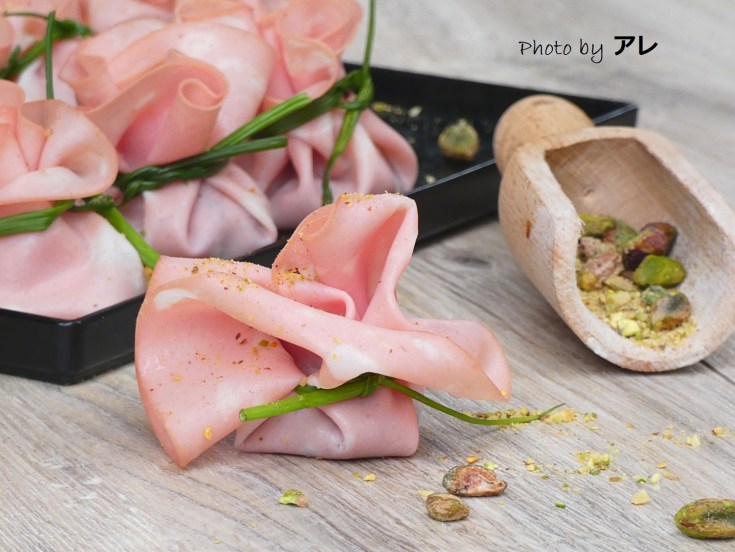 se i fili di erba cipollina tendessero a rompersi, metteteli pochissimi secondi in acqua caldissima e avvolgeteli immediatamente intorno alla mortadella. Scegliete ad ogni modo dei fili lunghi e grossi.