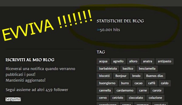 Oggi apro il mio blog e..... 50.001 visualizzazioni?Una goccia nel mare del web, lo so, ma a me, che per parecchie volte mi sono ritrovata scoraggiata e inebetita davanti ai piccolissimi "numeri" del mio blog, questa cifra ha fatto un certo effetto. Manca una settimana al secondo compleanno di Piattoranocchio e, a questo punto, i... Continua a leggere →