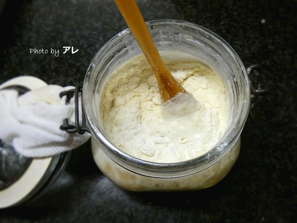 Aggiungere 30 grammi di farina, mescolare e riporre ancora coperto da garza, nello stesso luogo con la stessa temperatura per 48 ore.