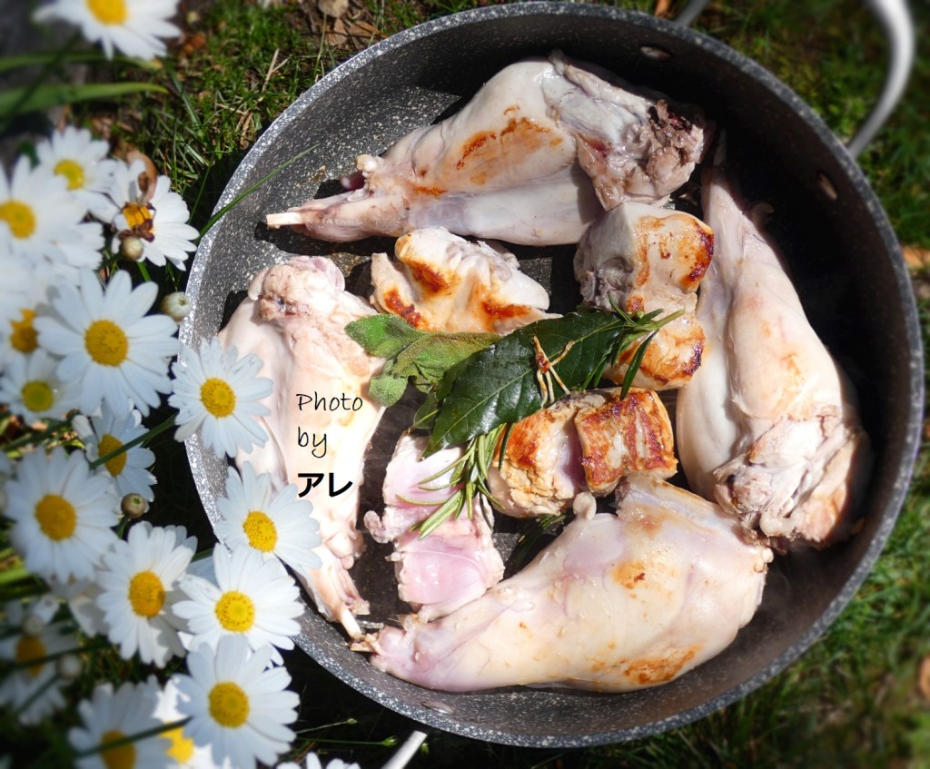 Solo guardando le foto della preparazione, si sente già il sapore del coniglio. Questo piatto non è comune qui, ma a volte il coniglio si trova sul mercato. Sarà una sfida da provare.