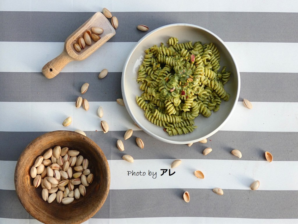 Mi addentro, di buon ora, nel mio piccolo orto, che a dirla tutta, pare la miniatura della Yakushima forest. I pomodori hanno sviluppato una vegetazione lussureggiante, imponente e ombreggiante, tale che, alla base, potrei costruire una piccola capanna, quale rifugio fresco per questa estate, poco più in là, gli steli delle cipolle di tropea si ergono ritti come pini, spandendo il loro profumo a destra e a manca. Per riequilibrare le dimensioni, bassi e esili bonsai di timo e basilico si litigano lo spazio con il prezzemolo che, ovviamente, è della specie gigante e lo da proprio a vedere. Per finire il lato alla mia destra, ecco spuntare le melanzane che quest’anno, esagerando un tantino, le ho piantate di tutti i colori, così, mi son detta, una parmigiana arcobaleno perché no! Volgendo lo sguardo e solo quello perché il resto del mio corpo è ancora intrappolato tra i grappoli di pomodori, noto le more e i lamponi che si sono ripigliati anche quest’anno. Da quando li ho messi in quell’angolo di orto, capisco perché si chiamano rovi: secchi e sparuti che paiono da buttare, si trasformano poi in verdissime foglie, spine e frutti rossi e neri succulenti nel giro di pochissime settimane. Ad infierire sulla mia incapacità ormai conclamata di non riuscire a seguire la luna e le stagioni, si stagliano, poco dopo, una miriade di foglie di verza. Già proprio la verza invernale, che da me cresce a giugno, ma non sotto forma di boccia corpulente e avvolta da grasse foglie ma, in lunghi, alti e longilinei alberi di foglie di verza, che vai a capire di quale specie autoctona facciano parte. Non da meno i meravigliosi finocchi, altissimi e snelli, dei veri fotomodelli, quasi anoressici a confronto dei loro fratelli, quelli veri, belli panciuti e dal ciuffetto sbarazzino. Non ultimi, i dolcissimi cetrioli che allungano le manine riccioline aggrappandosi l’un l’altro in un girotondo fanciullesco, sfoderando il fiorellino giallo, appena il sole li bacia. Dopo aver contemplato tutta questa meraviglia, raccolgo qualche foglia di basilico per preparare stasera, una velocissima pasta al pesto. Mentre batto, impasto e pesto, appunto, mi accorgo che quelle quattro foglie non sono nemmeno abbastanza per una porzione lillipuziana di pasta e non avendo tempo ne voglia, sguscio veloce dei pistacchi. I miei fusilli alla crema di pistacchi e basilico stasera ha quel non so che di verde giungla tanto famigliare quanto rasserenante!