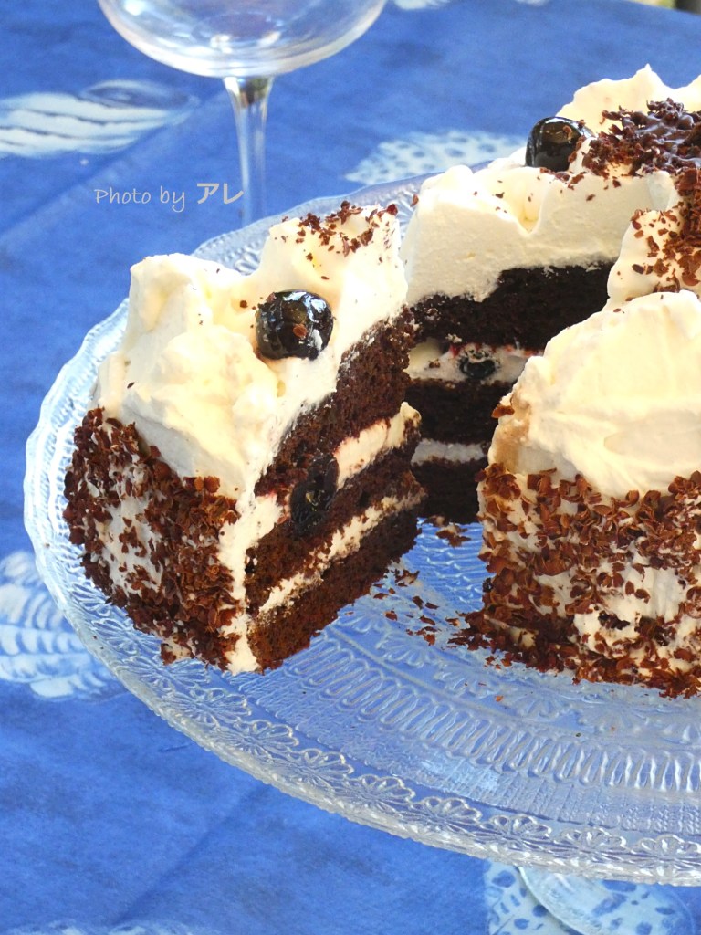 La torta della Foresta Nera, dal tedesco Schwarzwälder Kirschtorte, significa letteralmente “torta alle ciliegie della Foresta Nera”, ed è un dolce alla panna montata e cioccolato originario della Germania.  La Foresta Nera è l’area montuosa situata nel Land tedesco del Baden-Württemberg nota, tra le altre cose, per i suoi ciliegi che in passato venivano spesso piantati dalle coppie di sposi appena uniti in matrimonio.