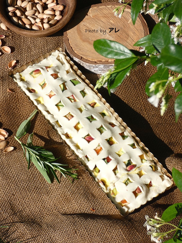 Quanto è singolare e grottesco entrare in un negozio in questo stranissimo periodo. La gente in fila, la temperatura che ti viene controllata da stuart in giacca e cravatta, le mani da sanificare e i guanti da indossare. Questa mattina mi sveglio di buon ora, ho intenzione di fare un giro nel mio negozio preferito di articoli per la casa, il classico negozio dei balocchi per me, dove gli occhi mi si illuminano per tutti gli oggettini più disparati: “uuh guarda un cucchiaino bellissimo, oh e quella? Una spatola incredibile e là, là guarda una cocottina shabby e questo nooo, che adorabile tagliere di legno scuro, proprio quello che piace a me e aspetta, aspetta un piatto azzurro indaco e quell’aggeggio?” Insomma quell’isteria degna dei capricci di una fanciulla. Premetto che, da buona genovese, cerco sempre oggetti in offerta, sottocosto, di riciclo o assolutamente indispensabili. Peccato che devo sbrigarmi, fuori la gente in fila si sta un pò scocciando e io, trafelata e agitata, col cuore in gola dall’emozione, me ne esco alla chetichella con in mano la griglia per crostate dei miei sogni. Torno a casa e mi rifugio subito nel mio orto, ho bisogno di una idea per una crostata, ma salata! Vorrei consumare solo verdura di stagione ma insieme a verze invernali, melanzane e pomodori di ogni genere, cavolini di Bruxelles e cetrioli, finocchi in fiore e patate, ci sono primizie parecchio fuori stagione. “Certo!” mi dico convinta “non esistono più le stagioni, l’inverno è caldo, la primavera piovosa, l’autunno ghiacciato e ventoso e l’estate… al primo temporale d’agosto è già finita! Come possono sapere a quale stagione appartengono queste povere creature?” Così raccolgo 2 zucchine verde smeraldo e via a cucinare la crostata salata senza stagione!