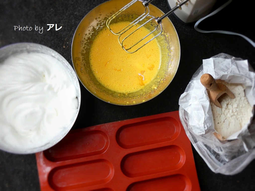 Montare tutti gli albumi a neve fermissima e aggiungere 150 grammi di zucchero. Una volta ben amalgamati lavorare i tuorli con i rimanenti 50 grammi di zucchero, la bustina di vanillina, con una frusta elettrica rendendo l’impasto spumosissimo. Incorporare gli albumi cercando di non sgonfiarli. Aggiungere infine la farina, poca per volta amalgamandola bene e con molta cura.