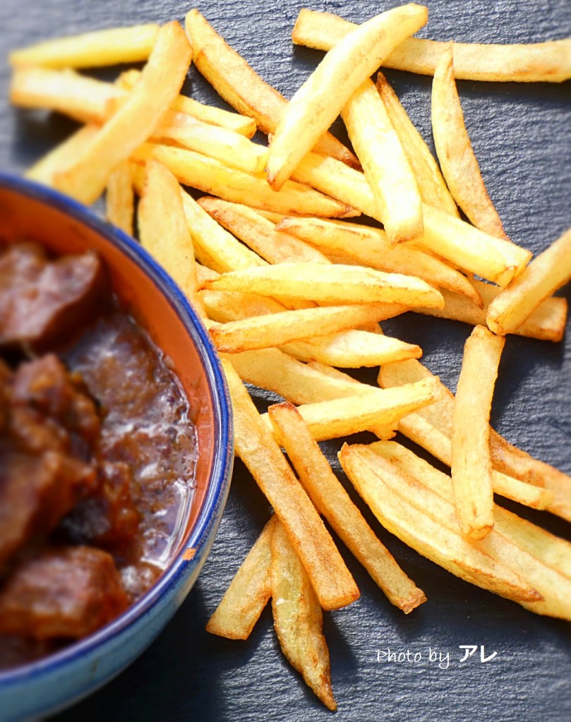 Sembra che la scoperta delle patate fritte, risalga alla fine del ‘700, quando i valloni della provincia di Namur non potendo pescare nel fiume Mosa ghiacciato in inverno, sostituirono i pesciolini con le patate tagliate a forma di pesce. In Belgio le patatine fritte sono un’istituzione, preparate sia in casa che come street food nelle friggitorie, dove cuocerle è una vera arte per ottenere la perfetta consistenza: croccanti fuori e morbide dentro. Si procede infatti ad una doppia frittura, solitamente nello strutto portato a due diverse temperature