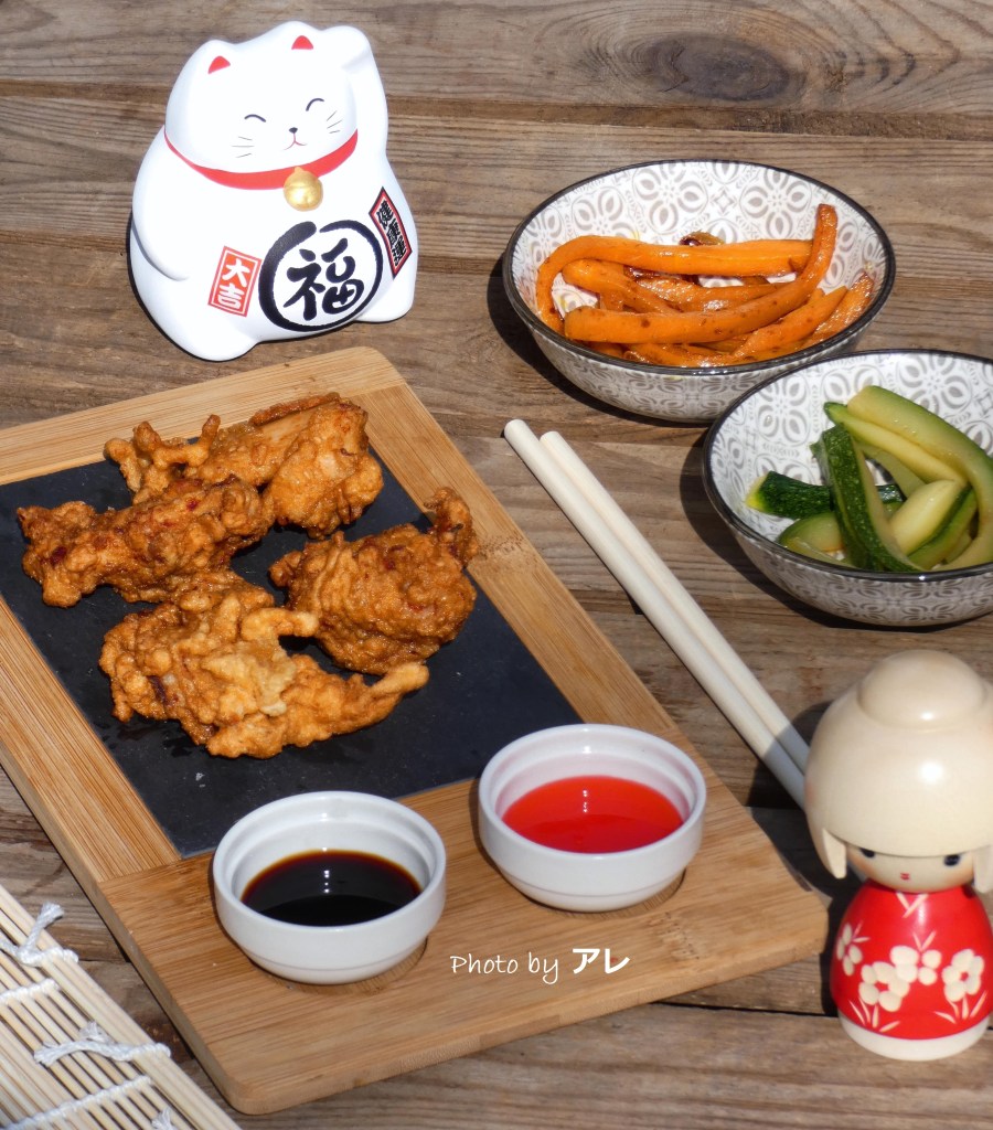 Il pollo kara-age è uno dei grandi classici della cucina giapponese. Si tratta di pollo fritto, normalmente venduto negli Izakayas tipici locali giapponesi in cui si servono bevande accompagnate da cibo oppure nei konbini, una sorta di supermercati che si trovano letteralmente a tutti gli angoli delle strade delle grandi città, ma anche in maniera più diffusa nei villaggi ed in zone rurali. Si preparano anche con spezie come curry, pepe nero o semplicemente all’aglio.
