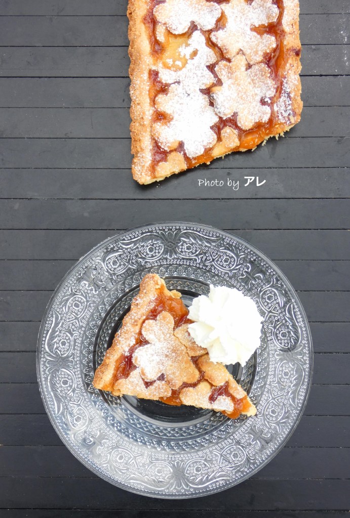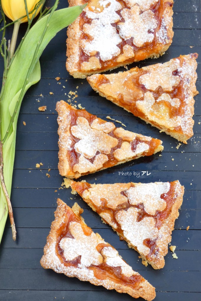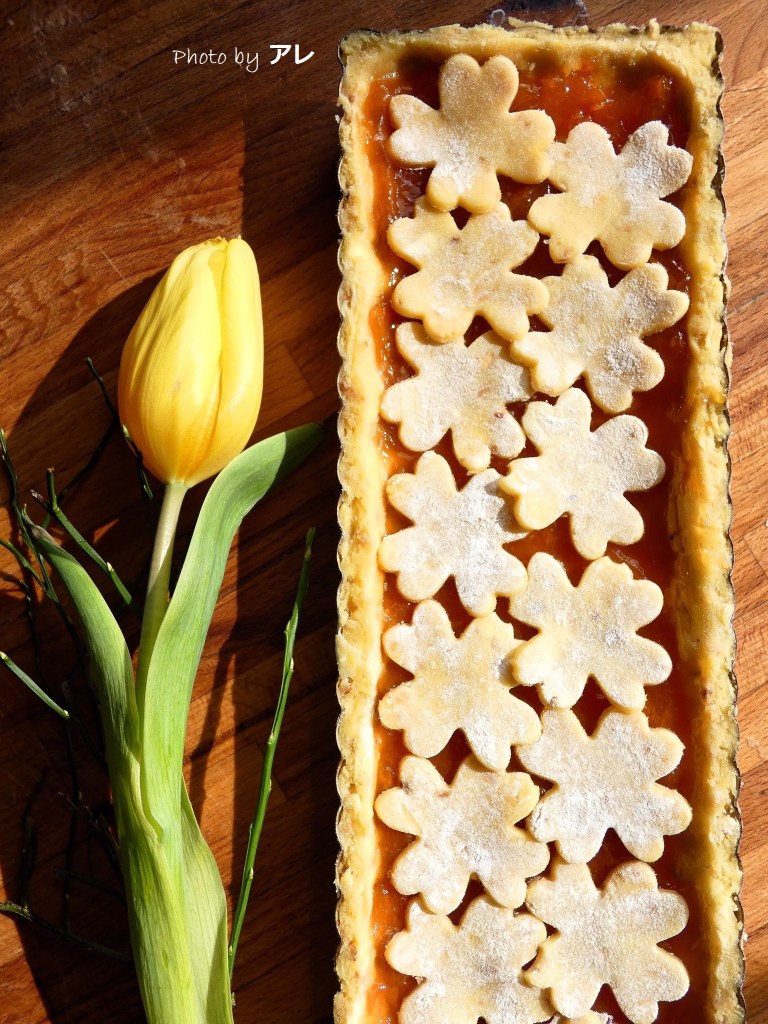 Una crostata semplice ma simpaticamente decorata con la pasta avanzata. Anzichè essere intrecciata con la classica griglia, ho ricavato tanti fiorellini con la formina e li ho distribuiti sulla marmellata. Simpatica vero?