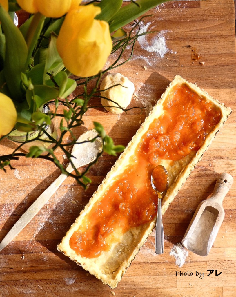 potete utilizzare la marmellata che preferite. Io avevo questa in dispensa, di albicocche, ma qualsiasi andrà bene!