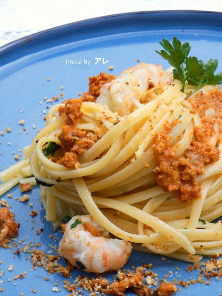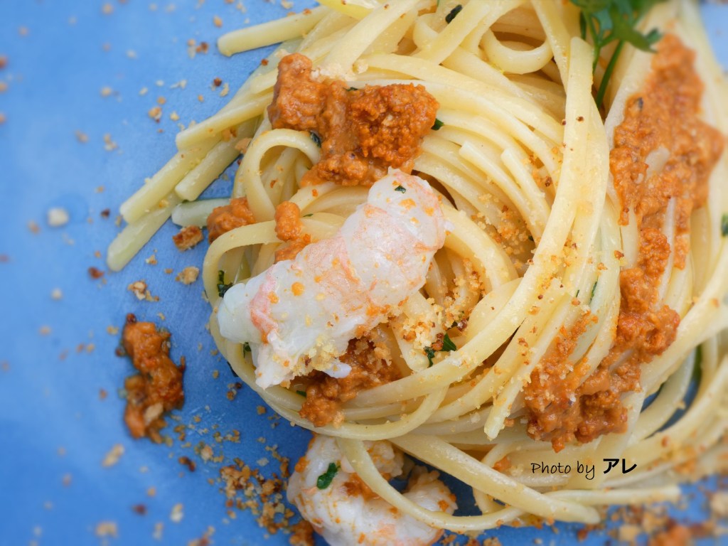 In una altra padellina, scaldare un cucchiaio di olio con il pan grattato e tutto il succo del limone. Quando la pasta è pronta, aggiungerla nella padella con aglio, prezzemolo e buccia di limone, mantecarla molto bene, togliere l’aglio e le bucce e aggiungere tutto il prezzemolo tritato. Spegnere e aggiungere subito la polpa di riccio di mare, allontanando la padella dal fuoco. Servire caldissime spolverizzando di pan grattato al limone.