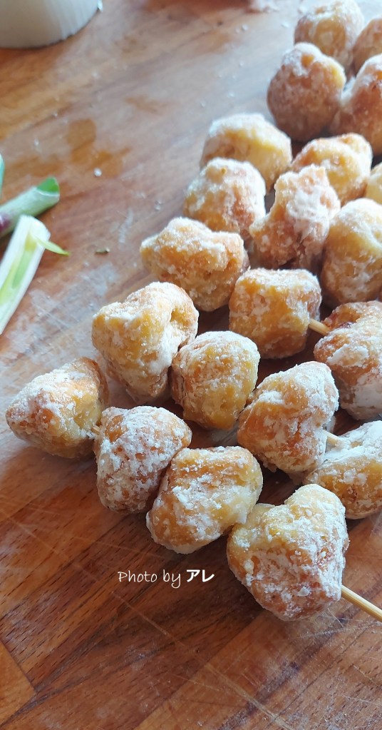 Avete mai sentito parlare di tsukune o più in generale di yakitori? Sono spiedini, ottimi come street food, resi interessanti dalla copertura di salsa teriyaki a base di salsa di soia, mirin (vino di riso), zucchero. Gli tsukune sono una variante di yakitori. Sono facili da riconoscere perché si presentano sotto forma di polpettine infilzate, una dietro l’altra, da uno spiedino di bambù.