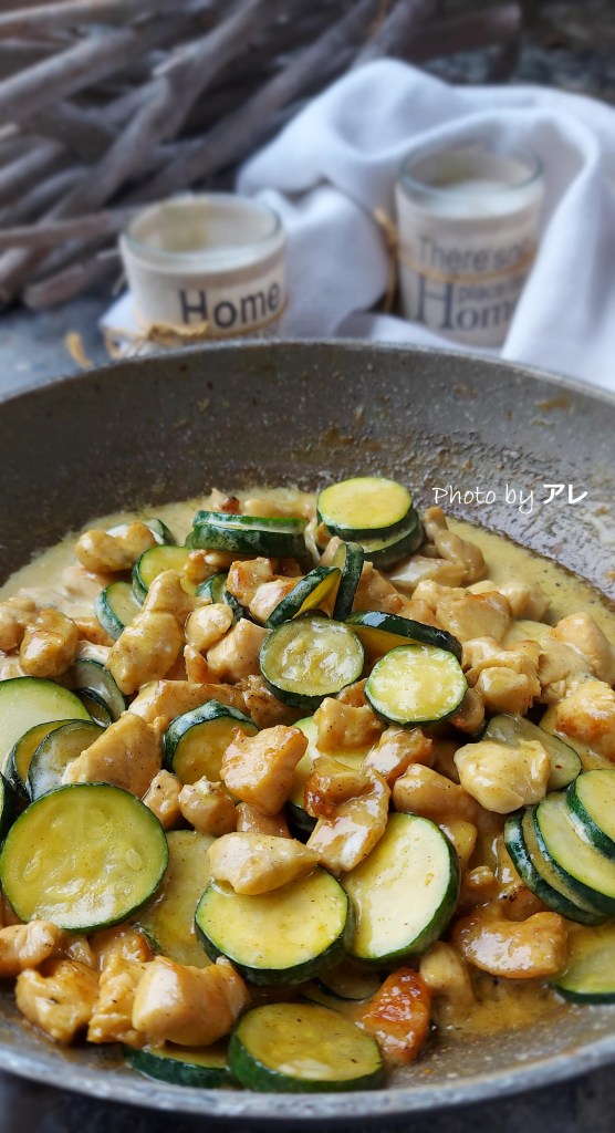 In una padella scaldare 2 cucchiai d’olio extravergine ed unire il petto di pollo tagliato a cubetti di 2 cm circa e cuocerlo per 8 minuti a fiamma vivace. Tagliare gli zucchini a rondelle non troppo sottili, unirli al pollo e far rosolare bene lasciando però gli zucchini croccanti. Regolare di sale, unire un cucchiaino di curry sciolto in un cucchiaio di panna vegetale e portare a cottura ancora per 5 minuti.