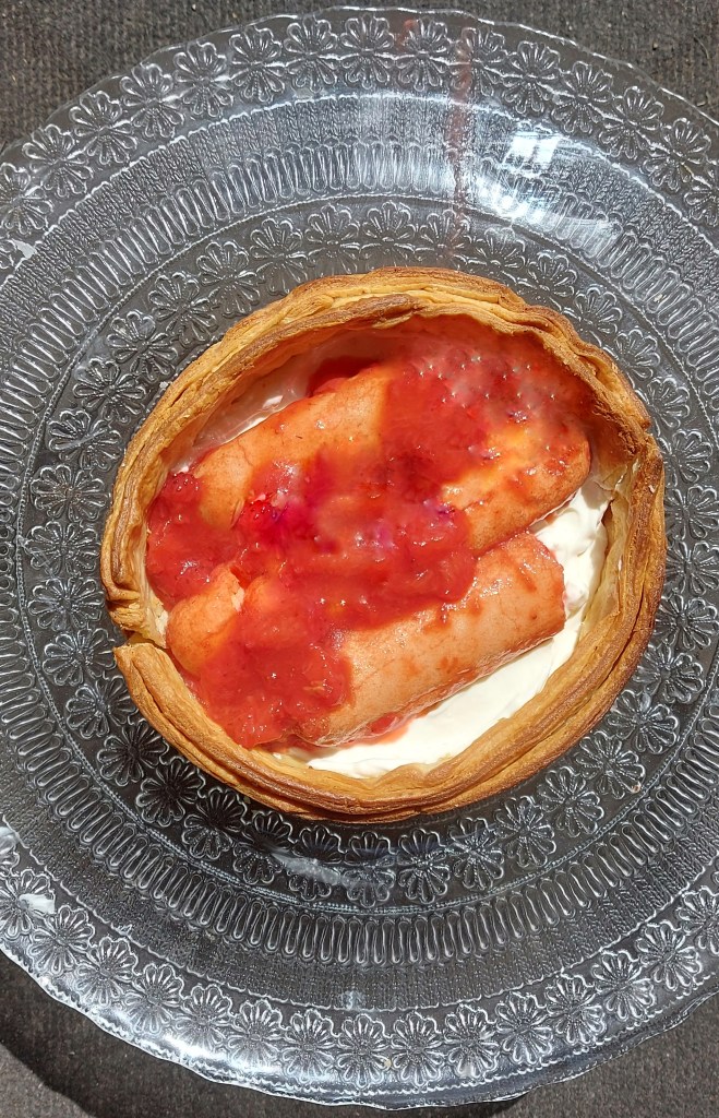 In copertina di CUCINA ITALIANA , una splendida torta di fragole e rabarbaro. La pasticciera Joëlle Néderlants ha lavorato la pasta sfoglia pronta trasformandola in un guscio così friabile e dorato da farlo sembrare appena uscito dal laboratorio di una grande pasticceria. Poi l’ha farcito con una crema di formaggio fresco, fragole e rabarbaro che aggiunge una delicata nota acidula e rinfrescante. L’idea l’ho presa qui ! Non avevo tutti gli ingredienti ma ho provato. Superlativa