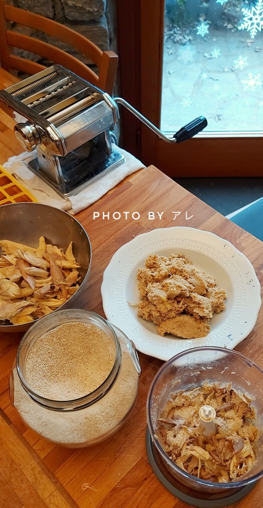 Si per me è la cosa più bella del mondo! Farmi aiutare in cucina dai miei uomini! Se poi la richiesta è: facciamo insieme la pasta e i raviolini con il ripieno di cappone? Non posso che essere estremamente felice. Una dozzina di uova giallissime e freschissime, impastare sporcando ovunque di farina, fare la sfoglia con la macchinetta a manovella, lui che gira e io che stendo. Riempire con il ripieno di carne fatto in casa e sovrapporre le sfoglie a quattro mani con mio figlio per farle combaciare perfettamente. Passare il raviolinatore a mano e appoggiare delicatamente ogni raviolino sullo strofinaccio immacolato. Tutti hanno il proprio ruolo magistralmente coordinato. Momenti adorabili, in silenzio, con occhi concentrati e sorridenti, con sguardi veloci d’intesa, la soddisfazione che sale, mentre ne assaggiamo uno ancora crudo, sorprendendoci della bontà infinita! I momenti più belli della mia vita!