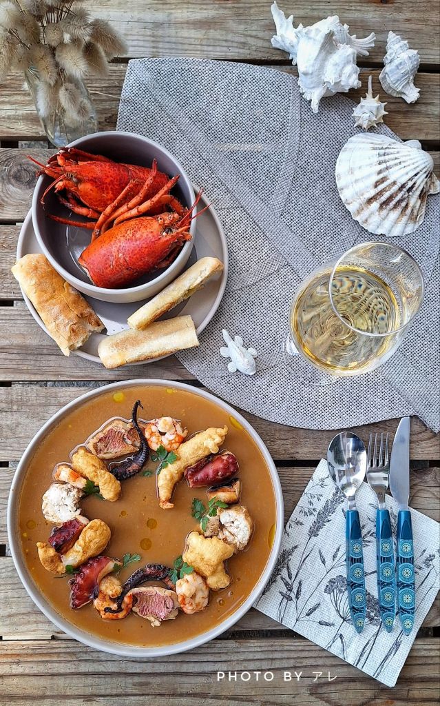Adoriamo il pesce in questa casa e lo cuciniamo spesso, come spesso prepariamo la zuppa di pesce. Ma sempre uguale ?? Nooooo questo non credo. Siamo passati attraverso la Liguria con il ciuppin, la Toscana con il cacciucco, la Francia con la Bouillabaisse marsigliese e la Cotriade bretone, la clam chowder di San Francisco! Insomma le abbiamo provate tutte ma stavolta ne volevo una diversa, una speciale, una mai provata. Ho studiato, mi sono fatta ispirare, ho immaginato, ho cercato i migliori ingredienti e ora seguitemi in questa esperienza meravigliosa che è la cucina!