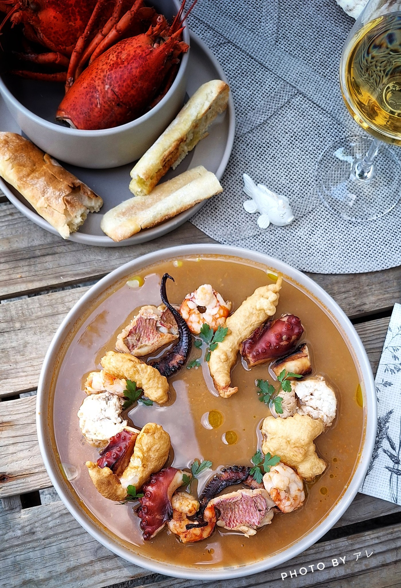 Elegante questa zuppa, superbamente gustosa, pesci cotti in modo diverso poi uniti nel piatto con una bisque eccezionale. Ne vogliamo parlare ?