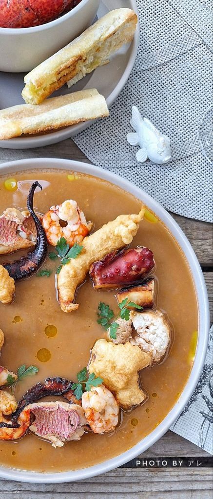 Una zuppa scomposta? Mi è stato detto….No! lasciamo stare le mode! nel piatto c’è tutto, non è scomposto, è anzi composto da tanti buonissimi pesci e crostacei che formano una zuppa particolare!