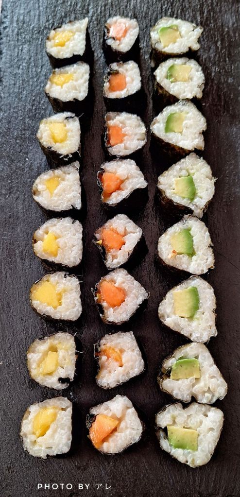 Hosomachi : riso, papaia, avocado, mango avvolti da alga nori