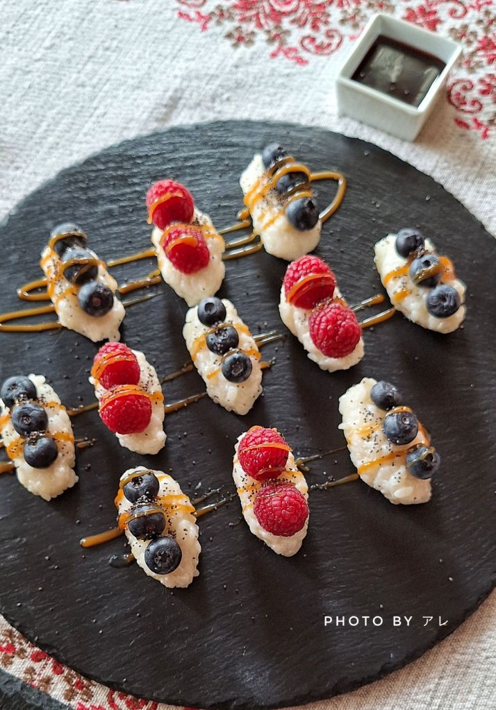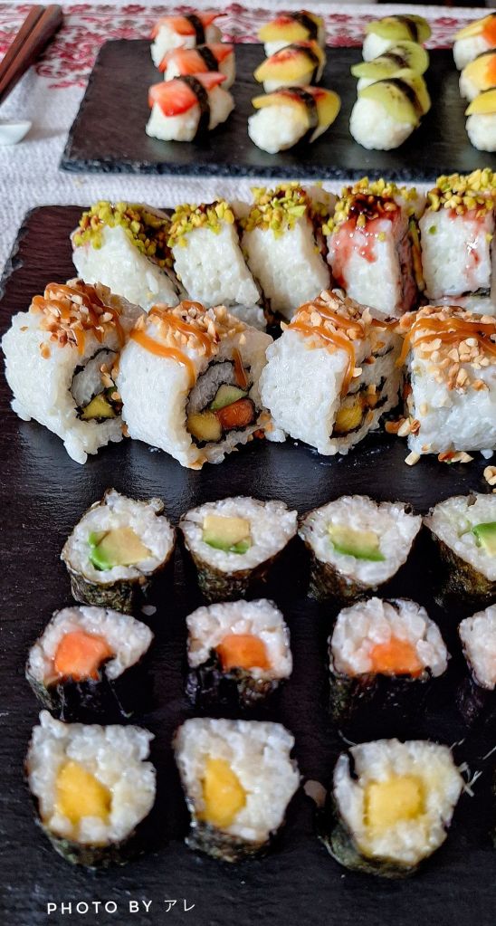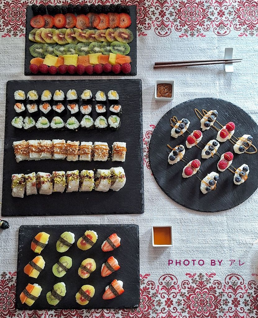 Ho preparato un sushi 🍣 dolce con la frutta. Mi sono molto divertita a studiare come poterlo presentare, nei minimi particolari, ricreando quello salato