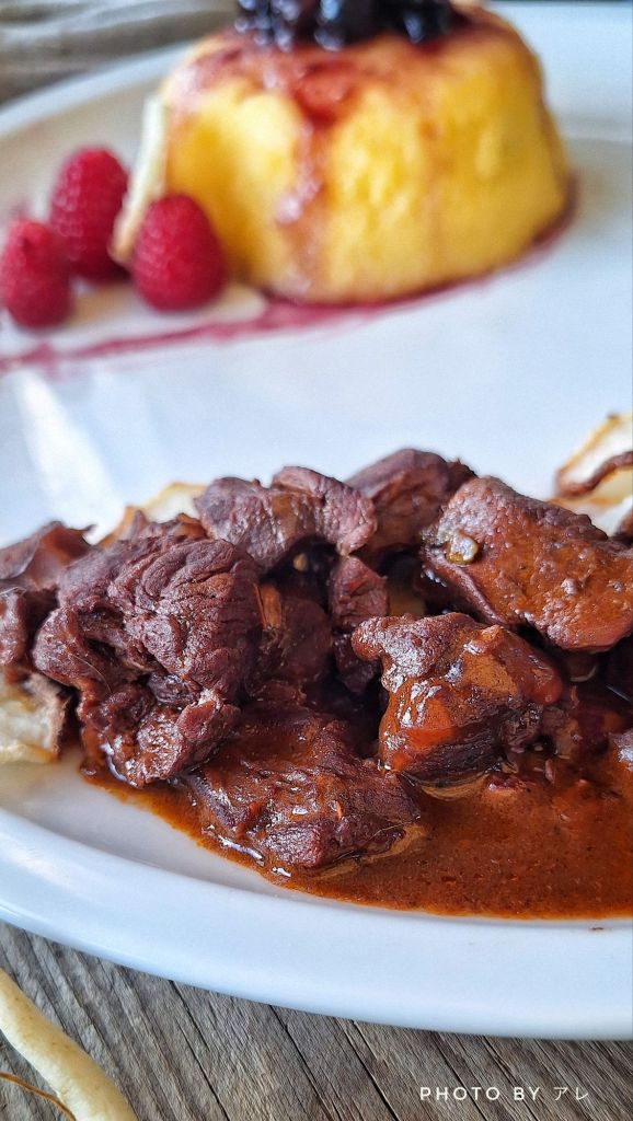 Pioggia fine e freddo, inizia così febbraio come tradizione vuole. Mi sveglio a fatica questa mattina, gli occhi ancora pesanti di sonno, il corpo appallottolato sotto il piumino. Ho nei pensieri un fantastico gulasch, non classico, ma di carne di capriolo sopraffina. Ho in mente polenta fumante con ripieno di mirtilli, insolito connubio per esaltare questa carne dono della natura. Gli occhi piano mettono a fuoco la stanza, grigia e buia, avvolta nelle coperte e nel loro tepore. Spalanco felice le finestre, inizio a spadellare, il profumo gira per la casa e sono contenta perchè fra poco assaggeró questa delizia riscaldando la mia mente e il mio cuore.