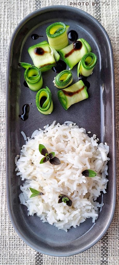 In un altro padellino scaldare un filo di olio di riso e tostare il riso basmati come si farebbe per il risotto. Sentirete un profumo incredibile! Quando è tostato ma ancora bianchissimo aggiungere acqua fino a coprire tutto il riso, non di più! Chiudere con coperchio, abbassare la fiamma e cuocere per il tempo indicato sulla confezione. L’acqua verrà assorbita, il riso sarà cotto ma non impastato.