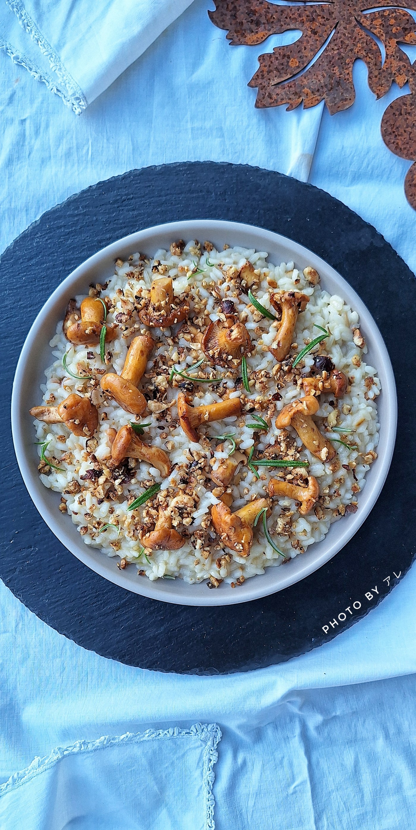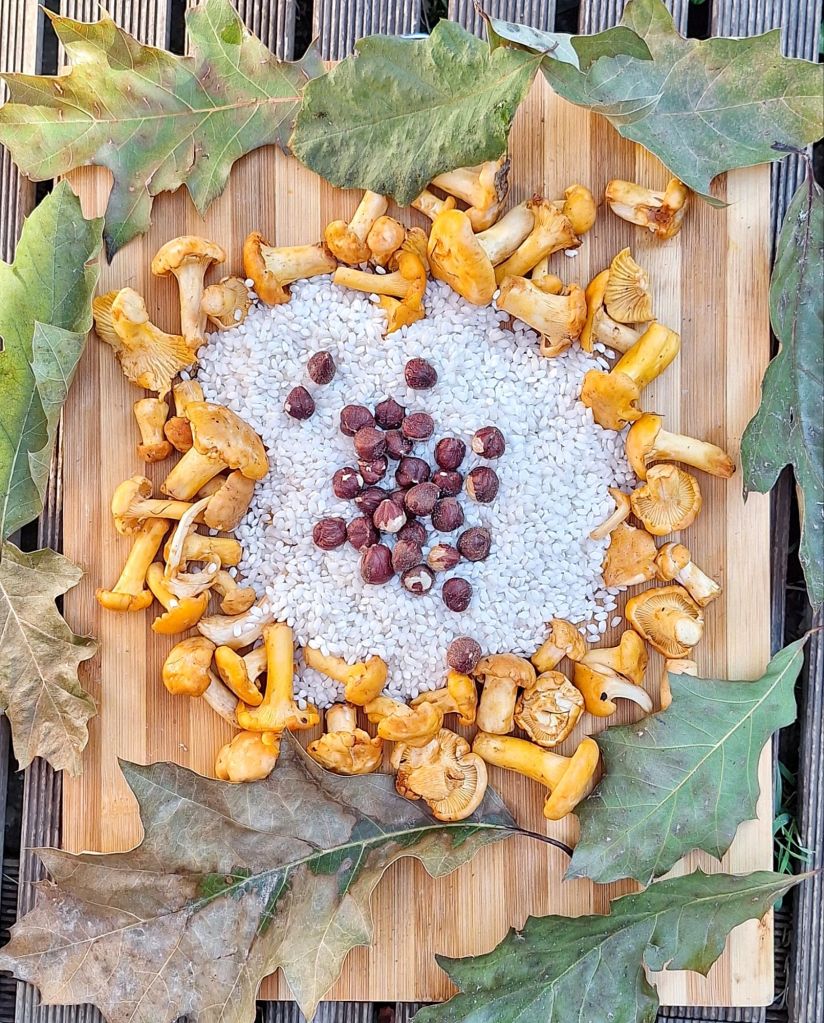 Ho aggiunto sopra, alla fine, delle nocciole tritate e tostate, il loro profumo ha donato oltre alla nota croccante al risotto, un aroma delizioso.