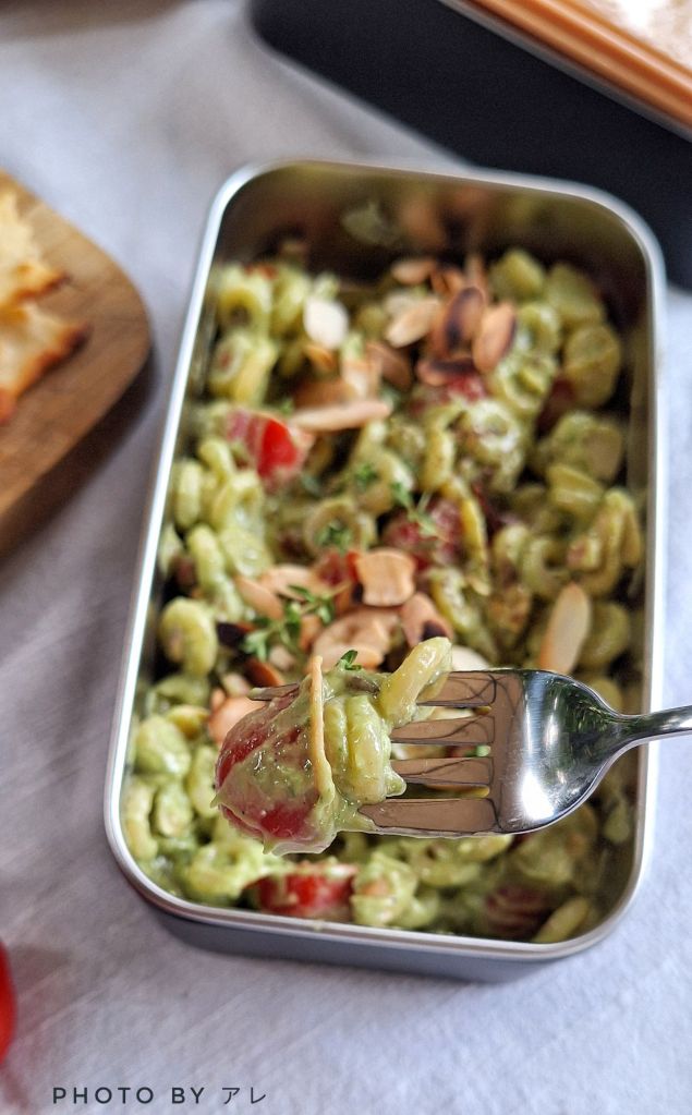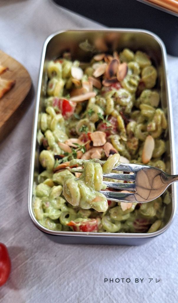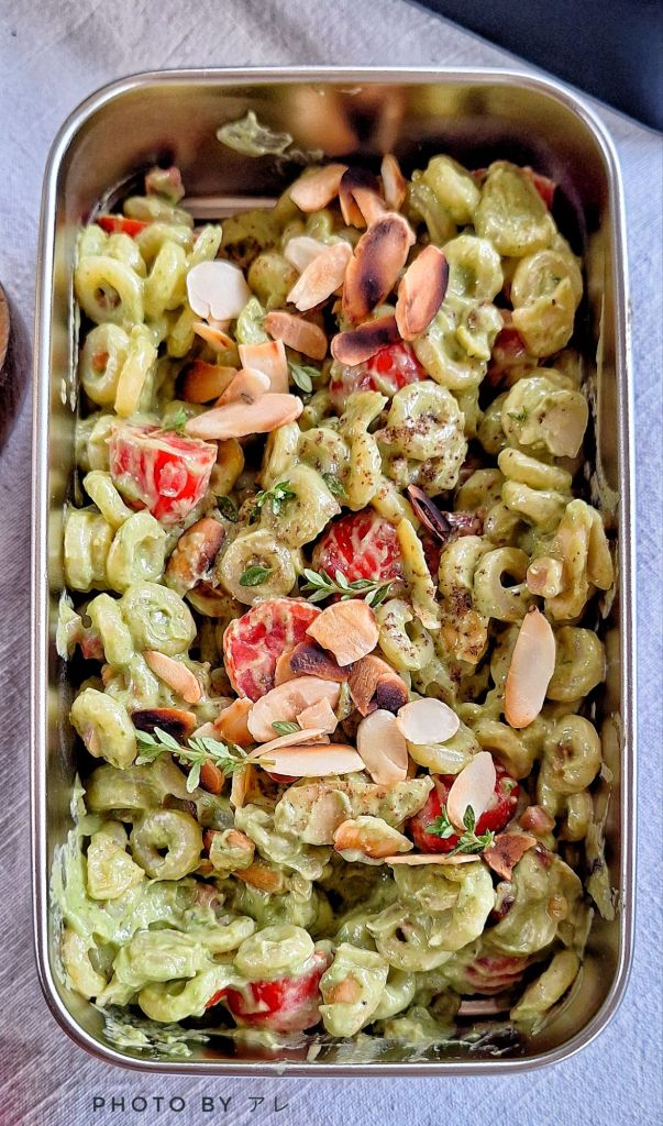 E via con un’altra super pasta da portare in ufficio e mangiare fresca! Oppure no? Anellini siciliani che solitamente si cucinano in meravigliosi timballi! È quasi ora di cena, devo però pensare a domani e a cosa preparare da portare in ufficio, la cucina straripa di padelle e padelline, ma ecco che la pasta cuoce, poi sarà da far raffreddare al dente, da condire con……. allora adesso frullo un avocado, due pomodorini freschi freschi e qualche mandorla tostata, ma mettiamoci anche un po di speck! In frigo a rinfrescare e buona notte!