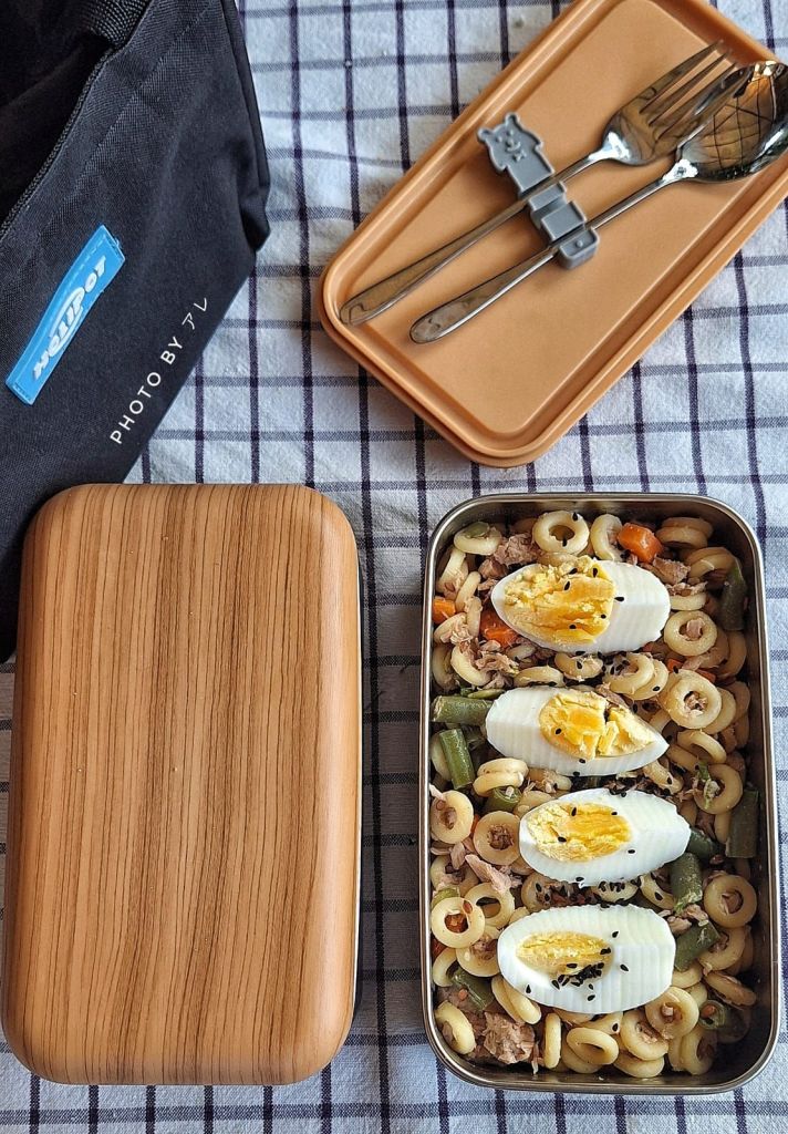 Cuocere 60 gr di anellini o altra pasta corta a piacimento come indicato sulla confezione. Tagliare in 4 o 5 pezzetti i fagiolini, in modo da ottenere piccoli segmenti da 2 cm circa. Lessarli per 7 minuti poi farli raffreddare insieme alla pasta. Tagliare 1 carota in dadini piccolissimi e lessarli per 3 minuti. Mettete un uovo in un pentolino e copritelo interamente con acqua fredda, un cucchiaino di aceto e un pizzico di sale. Accendete il fuoco e portate a bollore. Quando l’acqua inizierà a bollire abbassate il fuoco e fate sobbollire per 8 minuti. Condire la pasta con i fagiolini, le carote, il tonno sgocciolato dall’olio di conservazione. Tagliare l’uovo in 4 spicchi.