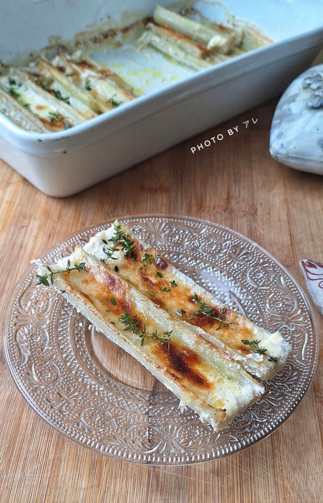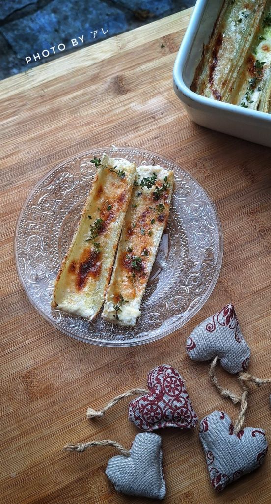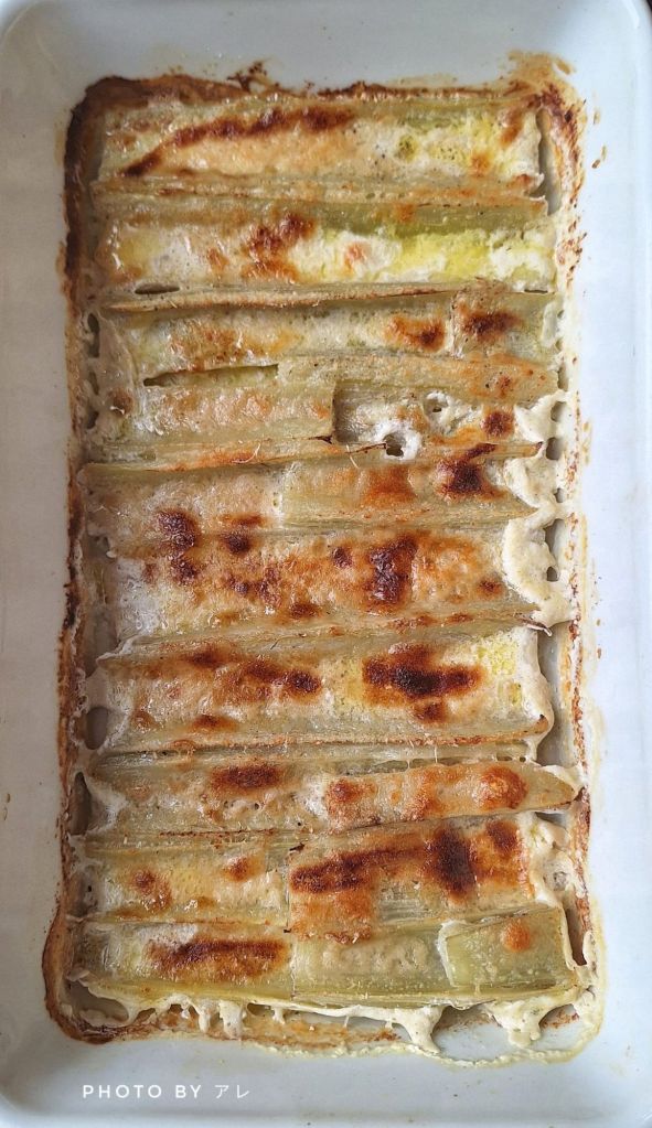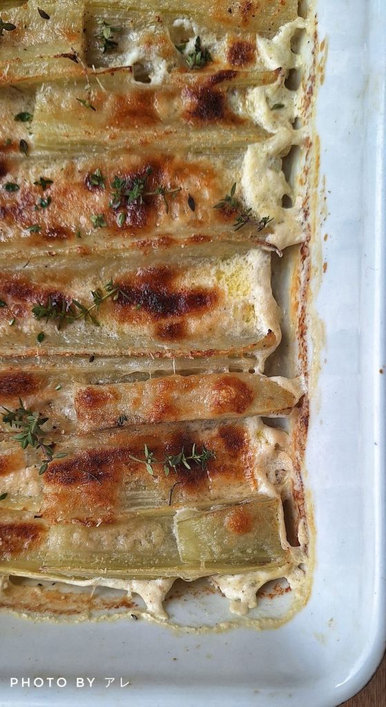 I cardi gratinati al forno sono spettacolari! Utilizzando solo il gambo carnoso e croccante non si sente neanche l’amaro che invece le foglie interne hanno. Usate le foglie per altre ricette, questa preparatela cosi! Con tanto buon burro e latte denso e pieno!