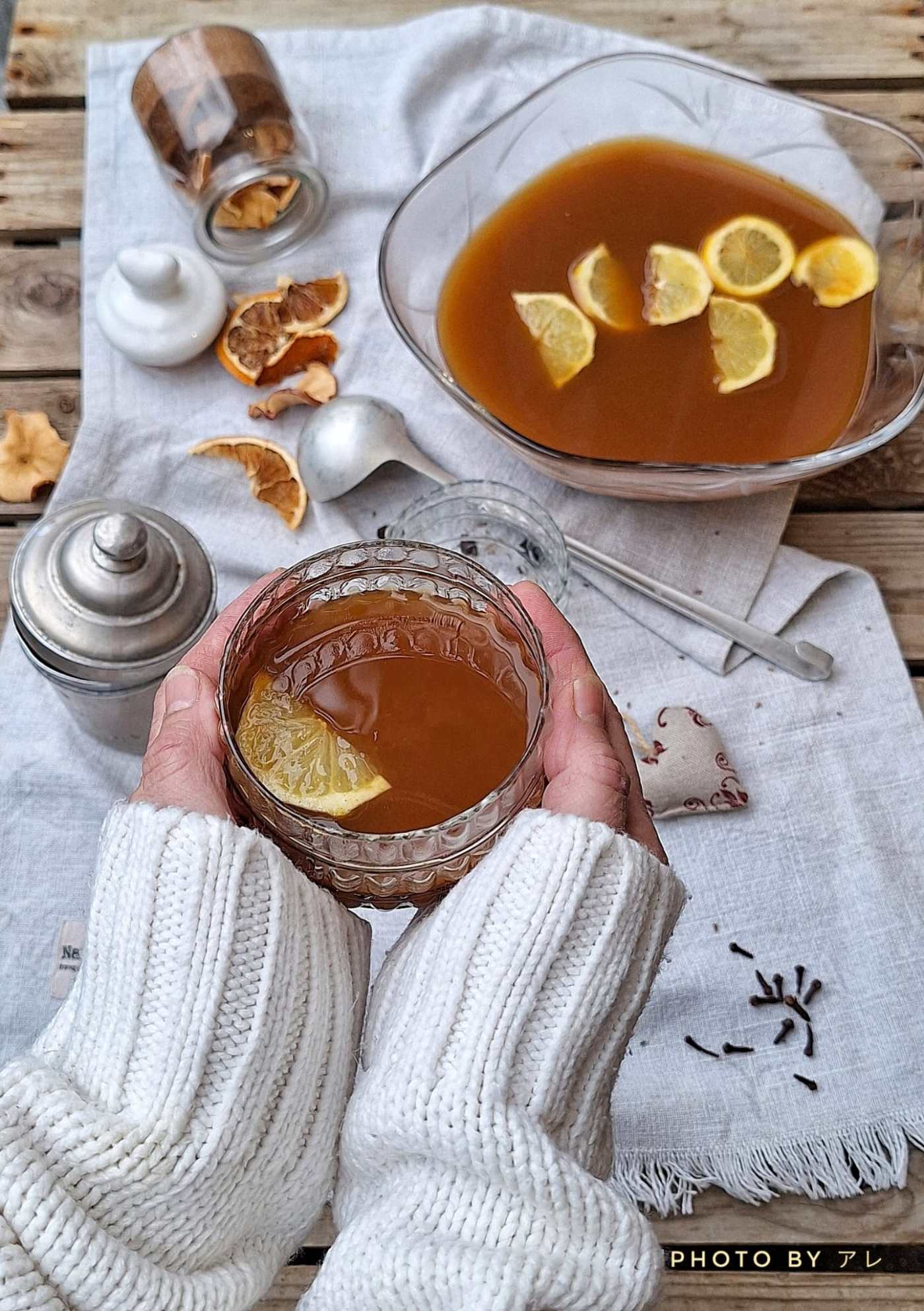 Fate scaldare, (mai bollire però !) tutti gli ingredienti tranne le fette di limone. Lasciare in infusione almeno mezz’ora, di più è meglio. Bere tiepido o caldo con le fette di limone aggiunte solo all’ultimo momento.