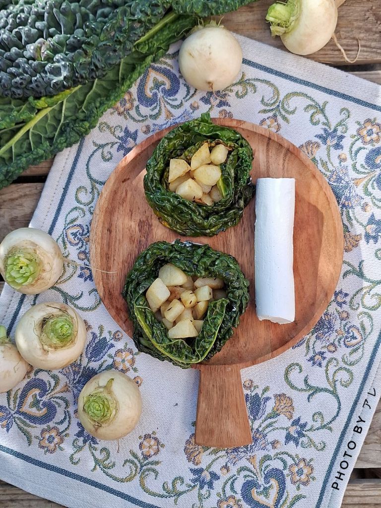 Semplicissimi, velocissimi. Una lunga foglia per ogni nido. Togliere la costa centrale in fondo del cavolo nero. In una padella mettere un filo di olio e un bicchierino di acqua. Aggiungere le foglie di cavolo nero ben distese. Cuocere per 3 minuti poi girarle e salarle e cuocere per altri 5 minuti. Tagliare le rape bianche in cubettini e farle rosolare con olio (o burro a piacimento). Dopo 3 minuti aggiungere un po di acqua calda e semi di cumino. In 10 minuti è tutto cotto! Fare i nidi se volete è solo estetico 😄 e gustateli tiepidi col del buon caprino fresco!