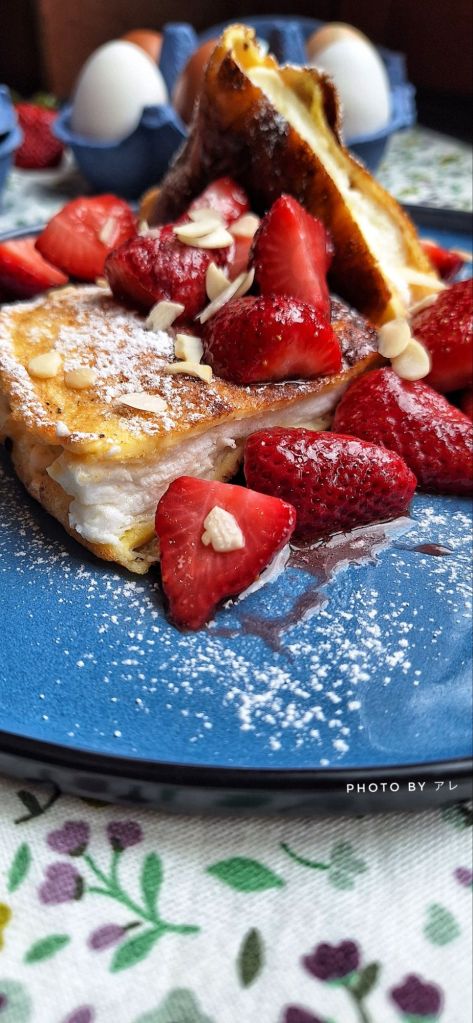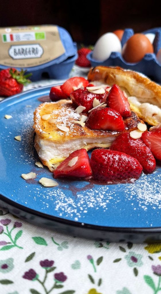 Avevo voglia di un dolce, dolce! Un dolce coccoloso, con le fragole che stanno conquistando i banchetti del mercato, con le uova del contadino e con la croccantezza delle mandorle. Sono una persona fortunata. Le mie ricchezze sono le gioie che mi circondano: la mia famiglia, la mia casa, il mio lavoro e il buon cibo. Non ho bisogno di altro!
