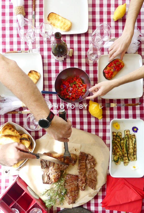 https://videopress.com/v/MNhISwPb?resizeToParent=true&cover=true&autoPlay=true&loop=true&preloadContent=metadata&useAverageColor=true Fiorentina di Sashi Choco Diaframma di Black Angus Zucchine aromatizzate con spezie fresche pepe nero e sale Pomodorini tagliati in piccolissimi pezzetti conditi con olio extravergine origano fresco salvia prezzemolo erba cipollina maggiorana fresca basilico sale integrale e pepe Pane al mais con semi di sesamo Buona grigliata!