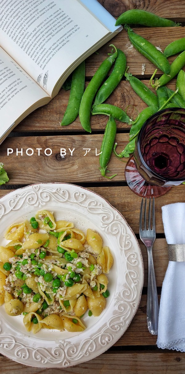Conchiglie risottate, lavarello e piselli freschi, se fuori piove…
