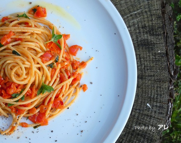 Spaghetti al pomodoro, bavaglia e bavaโฆ il gusto della semplicitร !